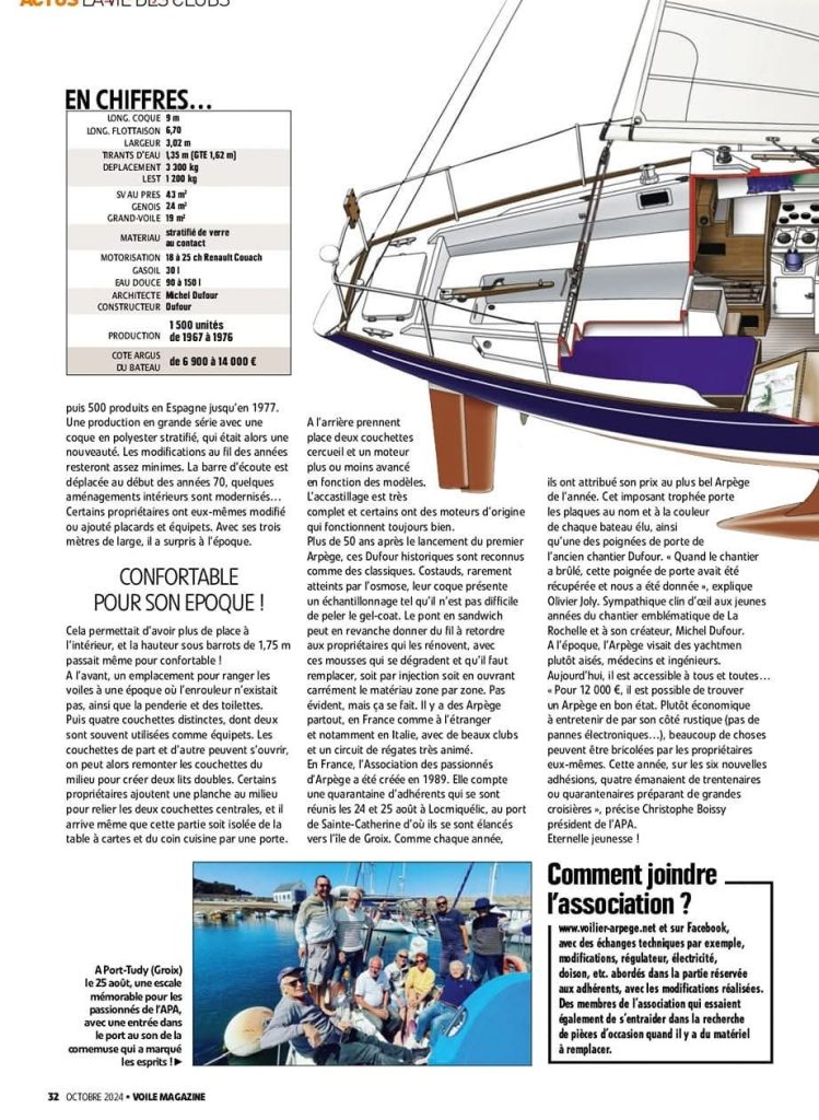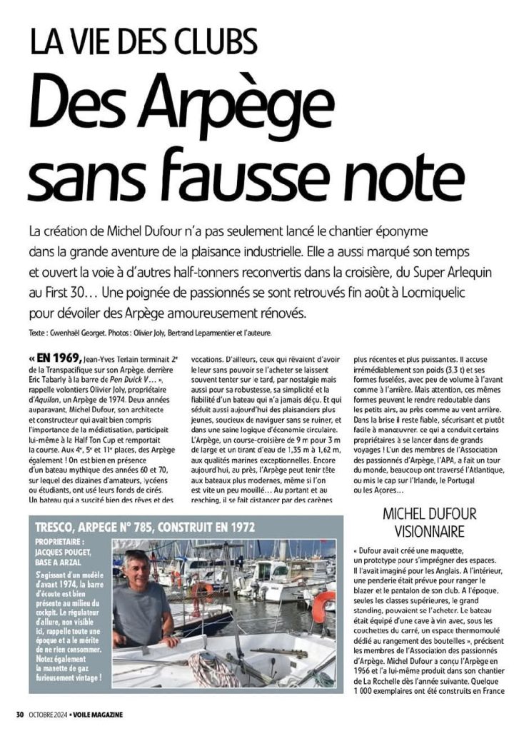 L’Arpège dans la presse Publicités de l’Arpège entre 1968 et 1976 publiées dans la revue Bateaux Voile Magazine Février 2021 Bateaux Octobre 2013 Cabotages Mars 2012 Voiles Magazine 1999 Bateaux spécial salon Janvier 1976 Bateaux Octobre 1971 Neptune Nautise Novembre 1970 Paris Match 1969 Yachting Classic 2020 Magazine Bateaux Septembre 2013 Loisirs Nautiques Juillet 2007 Voiles&Voiliers 1995 Bateaux Février 1974 Revue Bateaux ’70 Bateaux Octobre 1968 Southwinds Novembre 2018 Magazine Bateaux Septembre 2011 Fiche Voiles&Voiliers Mars 2000 Bateaux 1984 Neptune Nautisme Octobre 1972 Bateaux Octobre 1970 Bateaux Septembre 1968 Articles publiés lors de nos rassemblements annuels Phare de Ré Aout 2017 Le Télégramme de Vannes Aout 2008 Sud Ouest 12 Aout 2017 Ouest France Aout 2003 Edito Voiles&Voiliers Aout 2017 Berry Républicain 27 Juillet 2001 Le Phare de Ré Aout 2015 Article Ile d’Yeu 1997 Ouest France Aout 2014 Voile Magazine Octobre 2024